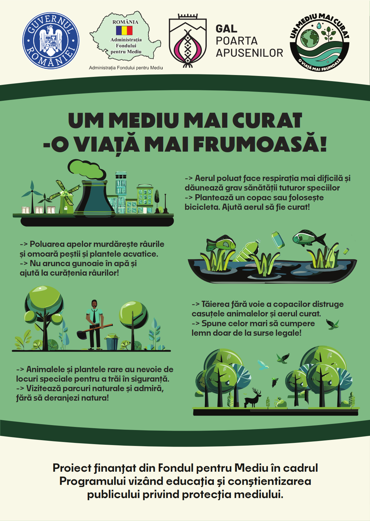 Proiectul „Un mediu mai curat, o viață mai frumoasă” educă elevii din comunități rurale, promovând responsabilitatea și implicarea activă în protejarea mediului pentru un viitor sustenabil.