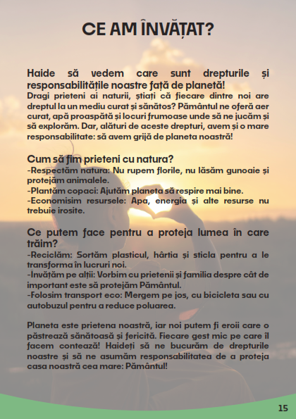 Proiectul nostru se distinge prin abordarea sa integrată, combinând educația teoretică cu acțiuni practice, și prin implicarea activă a comunităților rurale. Ne concentrăm pe formarea unei generații conștiente și responsabile, dedicată protejării mediului și promovării comportamentelor sustenabile.